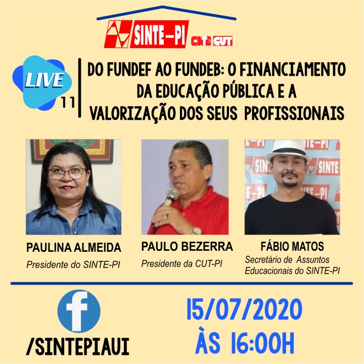 Na Live desta quarta-feira (15/07), vamos conversar sobre o financiamento da educação e a valorização dos seus profissionais, uma evolução do Fundef ao Fundeb.