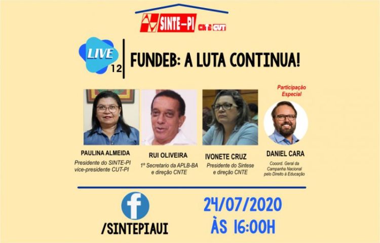 Na série de transmissões ao vivo que o SINTE-PI vem fazendo, a 12ª edição continua o debate sobre o Fundeb. Após a primeira vitória na Câmara dos Deputados a batalha agora é no Senado Federal.