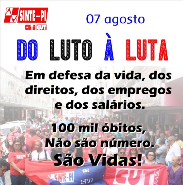 Neste 7 de Agosto é o Dia Nacional de Luto e Luta, onde todas as centrais sindicais, confederações, sindicatos e entidade aceitaram o chamado para Defender a Vida e os Empregos.