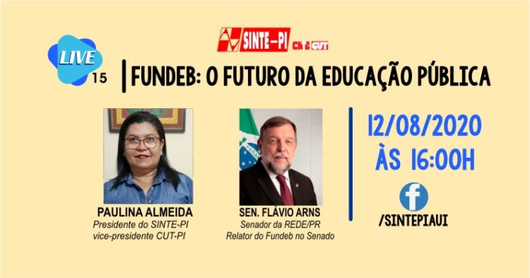 Com o tema: “Fundeb: o futuro da educação pública”, nossos convidados serão o senador Flávio Arns (REDE-PR), relator da PEC e a presidente do SINTE-PI, professora Paulina Almeida.