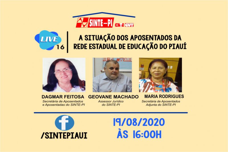 "A situação dos aposentados da rede estadual de educação no Piauí" é o tema da 16ª edição de transmissões ao vivo do SINTE-PI.