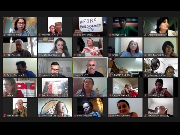 Na tarde desta quarta-feira (26), a reunião do Conselho Nacional de Entidades (CNE) da Confederação Nacional dos Trabalhadores em Educação (CNTE) aprovou a proposta de adiamento do 34º Congresso da CNTE, que estava previsto para janeiro de 2021. Com o apoio da maioria dos participantes, o evento foi remarcado para os dias 14, 15 e 16 de janeiro de 2022. O Conselho também prorrogou por mais um ano o mandato da atual diretoria da CNTE, que permanecerá no cargo até 16 de janeiro de 2022. As medidas foram tomadas em virtude da pandemia da Covid-19 que está impossibilitando a organização de eventos presenciais para o início do ano que vem.