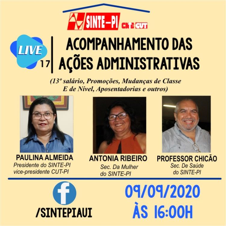 Na Live desta quarta-feira (09) vamos falar sobre os direitos dos trabalhadores em educação. Será 16h, no facebok/SintePi