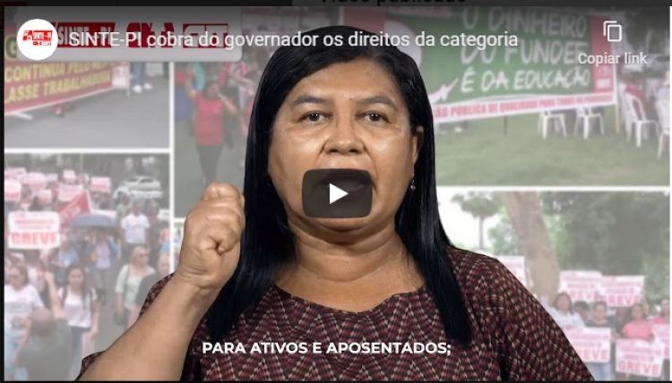 TV SINTE-PI - 17/09/2020 - A presidente do SINTE-PI , professora Paulina Almeida, leva mensagem dos trabalhadores em educação ao governador Wellington Dias e reforça a pauta de reivindicação da categoria. Alguns pontos de reivindicações dos trabalhadores em educação básica do Piauí: