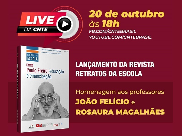 Na próxima terça-feira (16), a Confederação Nacional dos Trabalhadores em Educação (CNTE) promove o debate online especial de lançamento da revista Retratos da Escola “Paulo Freire: educação e emancipação”. A LIVE será transmitida a partir das 18h nas redes sociais fb.com/cntebrasil e youtube.com/cntebrasil.