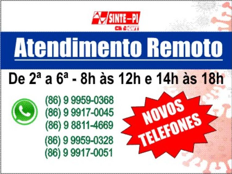 O SINTE-PI disponibilizou novos números para o atendimento remoto do sindicato enquanto durar a pandemia.
