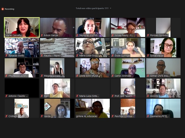 Na manhã desta terça-feira (2), a Confederação Nacional dos Trabalhadores em Educação (CNTE) promoveu o seminário pedagógico para debater o ensino híbrido e o enfrentamento à precarização do trabalho docente. O encontro reuniu mais de 500 participantes de todas as regiões do país, incluindo representantes dos sindicatos, diretores e diretoras da CNTE e a participação especial da professora de didática da Unirio, Maria Luiza Süssekind, primeira secretária da Associação Nacional de Pós-Graduação e Pesquisa em Educação (Anped).