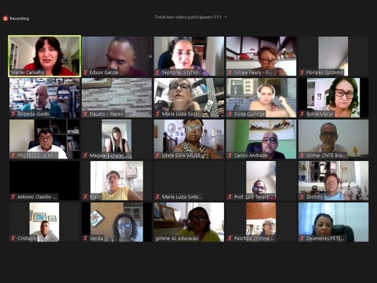 O secretário de Relações Internacionais da CNTE, Roberto Franklin de Leão, compartilhou um breve relato sobre a situação mundial: "A Internacional da Educação (IE) tem discutido o retorno às aulas. A grande preocupação dos trabalhadores é como se dá esse retorno às aulas presenciais, como fica a vida dos trabalhadores a partir do que vier a acontecer com o fim da pandemia e do que já está acontecendo, o ensino híbrido e como fica a jornada de trabalho". Ele também mencionou preocupação com a privacidade: "O país inicia o retorno às aulas e os trabalhadores da educação já tiveram sua privacidade violada a partir do momento que começaram o ensino a distância. O celular do profissional já está na mão de todo mundo, horário de trabalho não existe, e isso é uma coisa que precisamos debater, precisamos regrar essas questões, para que possamos viver a nossa vida com o mínimo de privacidade".