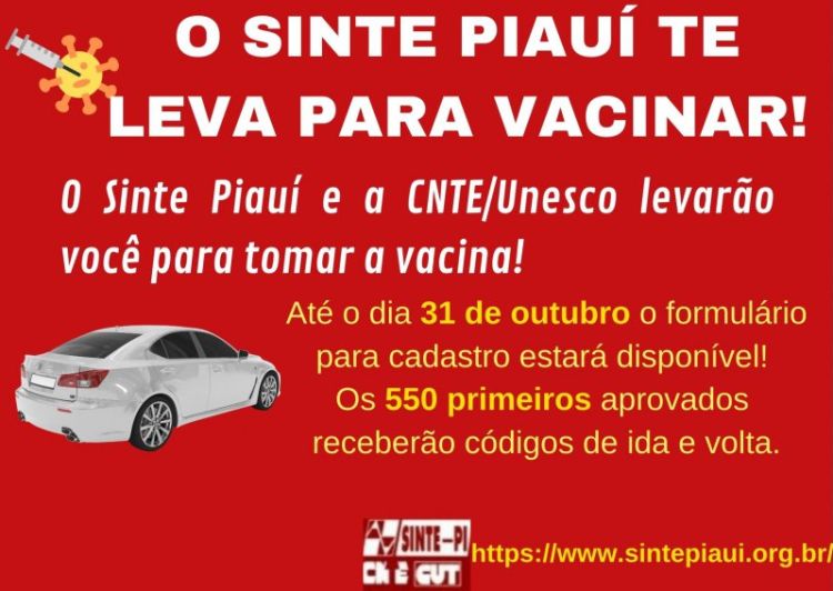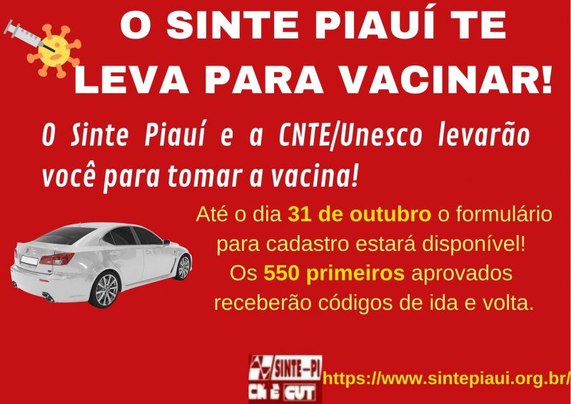 Agora, junto com a CNTE e a Unesco, ajuda os/as filiados/as ao Sindicato no deslocamento para tomar vacina!