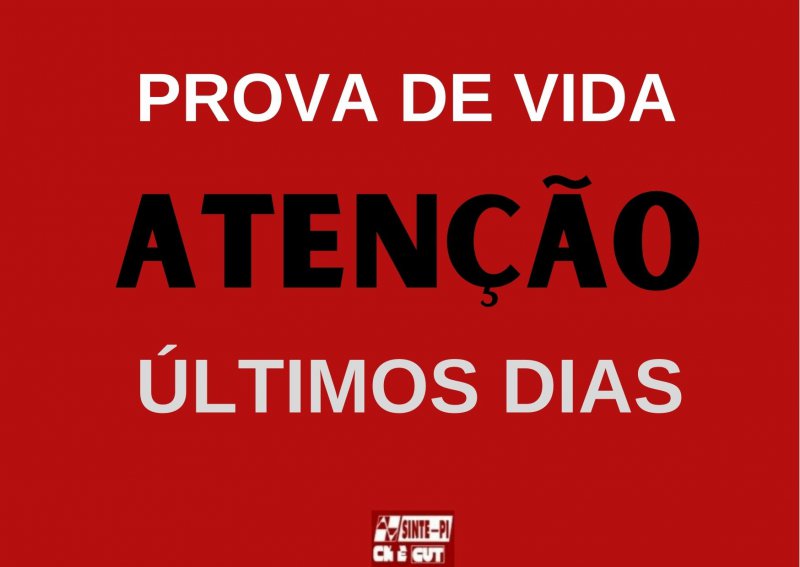 O Sinte Piauí alerta aos/as servidores/as inativos/as, aposentados/as e pensionistas que faltam três dias para o encerramento do recadastramento. O prazo para a realização da Prova de Vida 2021 será encerrado no dia 30 de setembro. Após esta data pode ocorrer a suspensão do contracheque. Nas perspectiva de evitar que isto ocorra, o Sinte Piauí disponibiliza os telefones (86)32223278 e (86)999170045 (Leda/Marcos), para orientações, informações ou agendamento visando atendimento presencial no escritório do sindicato.