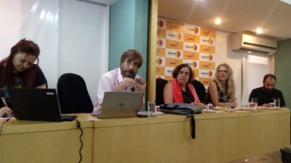 Natália alerta para o cenário de desigualdade do país, a falta do olhar para a pobreza e a supervalorização da corrupção como principal problema do Brasil. “O FNPE tem a responsabilidade de desconstruir a narrativa moralista e preconceituosa contra a educação e ser resistência nas escolas”, sugere a educadora. Para Gil Vicente, o país vive problema estrutural, que demanda a realização da reforma política. Segundo ele, sem a qual não se consegue enfrentar a questão do fundo público x capital. “30% do orçamento público vão para beneficiamento privado.