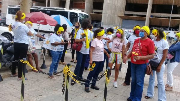 O Sinte Piauí integrou, na manhã desta quarta-feira (25), com diversas entidades dos movimentos feministas, populares e sindicais da manifestação em frente ao Tribunal de Justiça do Piauí (TJ-PI).