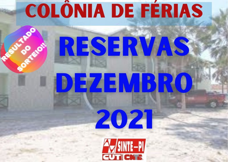 Em sorteio realizado nesta segunda-feira (29), no escritório do Sinte Piauí, foram definidos os filiados e filiadas da entidade que desfrutarão da Colônia de Férias no mês de dezembro. Veja a seguir:
