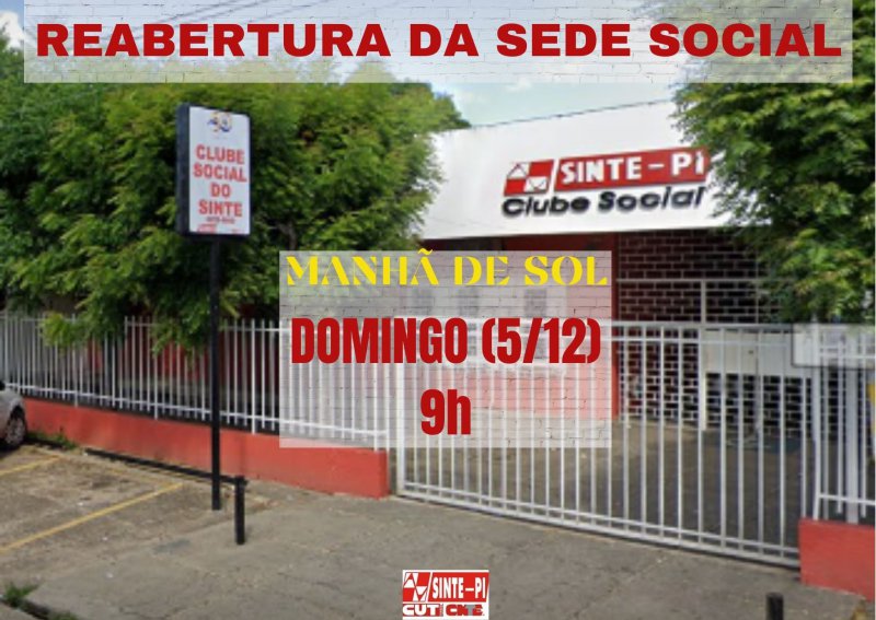 O Sinte Piauí reabre mais um de seus espaços institucionais, com a “Manhã de Sol”, neste domingo (5), a partir das 9h, na sua sede social, localizada na rua Manoel Domingues, nº 2520, no bairro Por Enquanto.