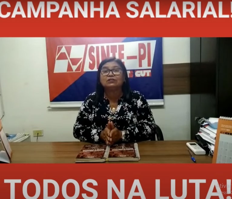 A presidenta do Sinte Piauí, Paulina Almeida, convoca as trabalhadoras e os trabalhadores da rede estadual de ensino para a luta pelos reajustes salariais de 2019, 2020e 2022.