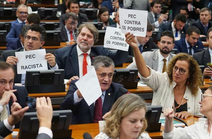 O fato concreto é que a sessão foi tumultuada e teve protestos da oposição que é totalmente contra as mudanças nas regras da aposentadoria dos trabalhadores e trabalhadoras urbanos e rurais e os outros pontos da reforma que mudam até itens da Lei Trabalhista, como é o caso do fim do pagamento da multa de 40% do FGTS para quem se aposentar e decidir permanecer no mesmo emprego.