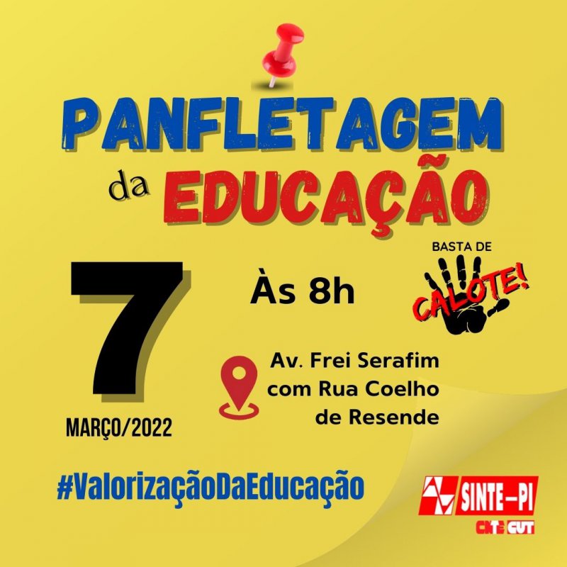 Em Carta Aberta, que será lançada na panfletagem convocada pelo Sinte Piauí, para segunda-feira (7), no cruzamento da Avenida Frei Serafim com a Rua Coelho de Resende, a partir das 8h, o sindicato informa a sociedade piauiense os motivos que levaram os trabalhadores e trabalhadoras em educação da rede estadual a entrar em greve geral por tempo indeterminado.