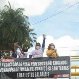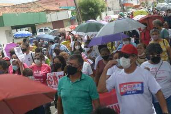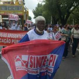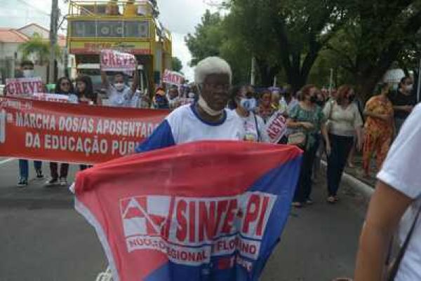 Durante a "I Marcha dos Aposentados" promovida pelo Sinte Piauí, na manhã desta quarta-feira (9), os aposentados e aposentadas da educação mais uma vez mostraram o quanto são aguerridos na defesa dos seus direitos e evidenciaram para a população a situação crítica que atravessam, principalmente após a reforma da Previdência do governo Wellington Dias há três anos.