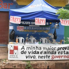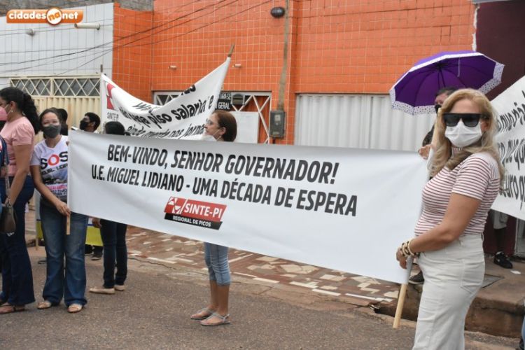 Apesar de agendada, a participação do govenador Wellington Dias na reinauguração da Unidade Escolar Miguel Lidiano não ocorreu, em função do protesto da categoria, que está em greve geral. A presidente do Sinte Picos, Gisele Dantas, sublinhou que “promovemos esta manifestação, para pressionar o governador no que diz respeito ao pagamento do reajuste do Piso, de 33,24%, deste ano, além dos referentes aos anos de 2019 e 2020”. Concluindo, a presidente do Núcleo Regional de Picos afirmou que “estamos nessa luta, em defesa dos nossos direitos, são quatro anos sem reajuste salarial, um verdadeiro arrocho salarial”.