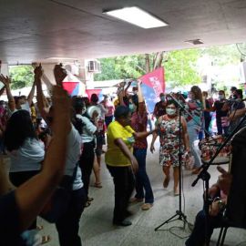 O Forró da Greve promovido pelo SINTE PI na manhã desta segunda-feira (11), na Secretaria de Educação do Piauí (SEDUC PI), marcou o 48º dia da greve dos trabalhadores e trabalhadoras da rede estadual de educação, balançando a estrutura da SEDUC PI. Foi um Forró de luta, que com muita dança e garra, foi pontuado pelas manifestações da categoria expondo as causas da greve e suas demandas para a sociedade.