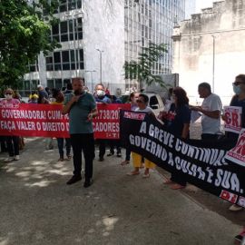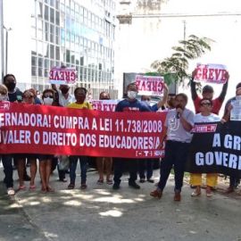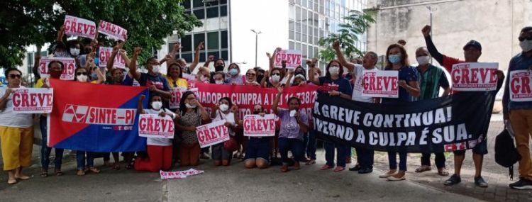 A Praça Rio Branco, no Centro de Teresina, foi o cenário da panfletagem realizada na manhã da quarta-feira (13)promovida pelo SINTE PI, pelos trabalhadores e trabalhadoras da rede estadual de educação. Há 50 dias em greve, a categoria continua na luta, mobilizada em todo o Piauí, na defesa da valorização profissional, do. Piso do Magistério e, neste sentido, do pagamento dos reajustes salariais dos anos de 2019 (4,17%), 2020 (12,84%) e 2022 (33,24%), devidos pelo governo estadual as/aos profissionais em educação.