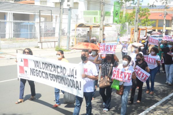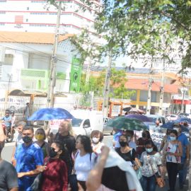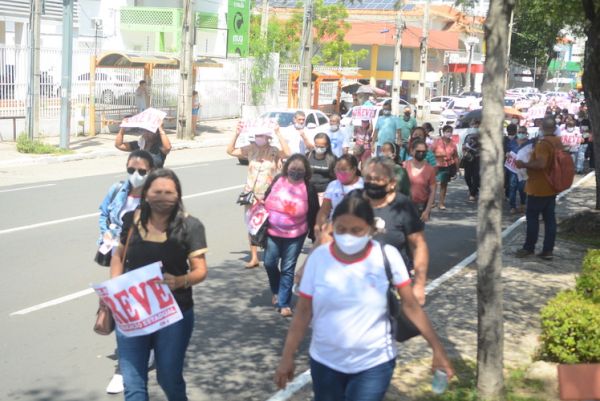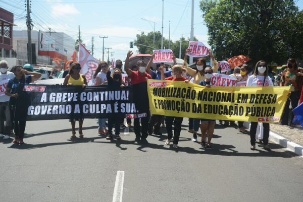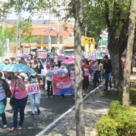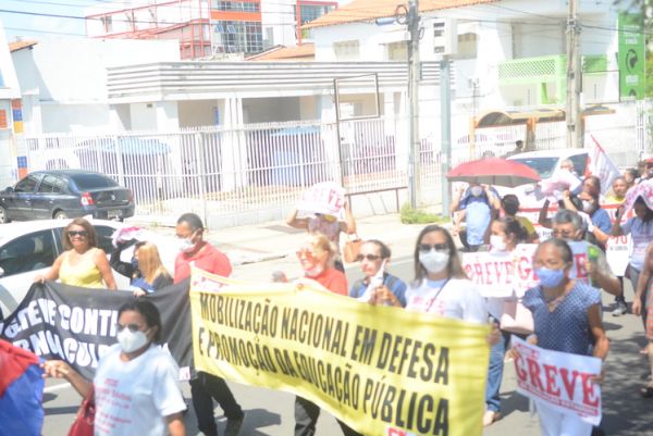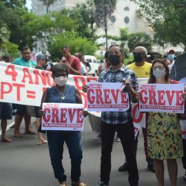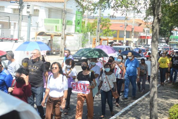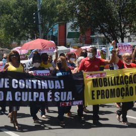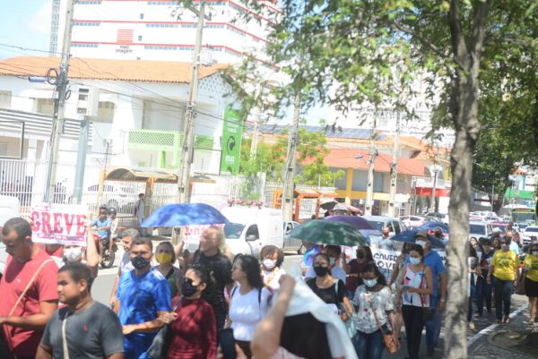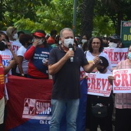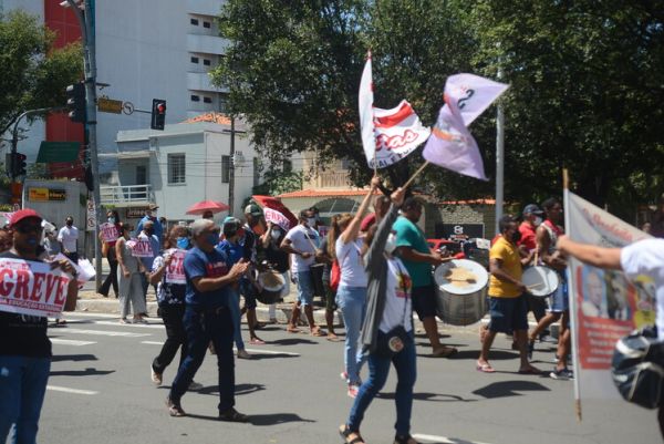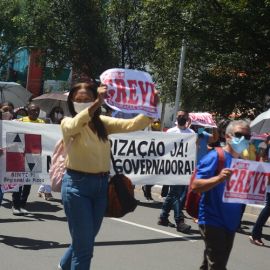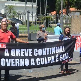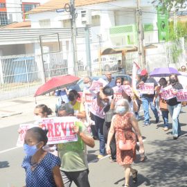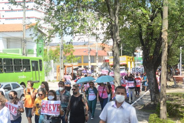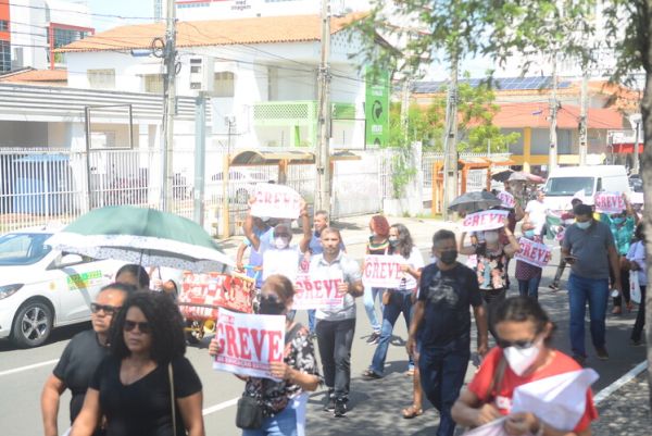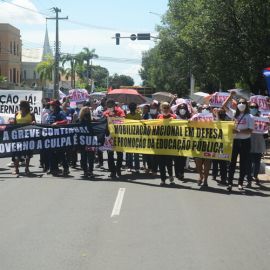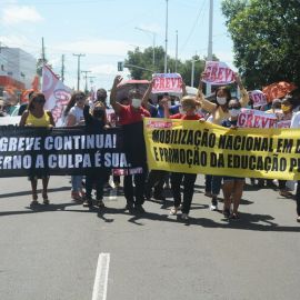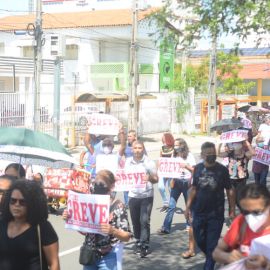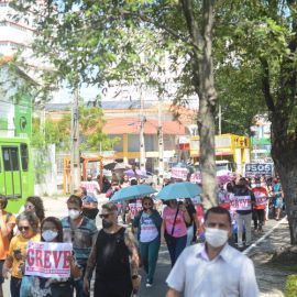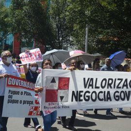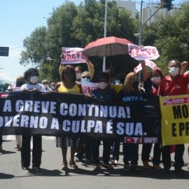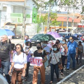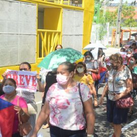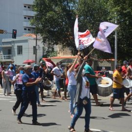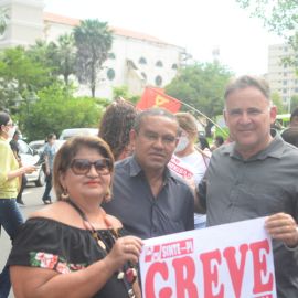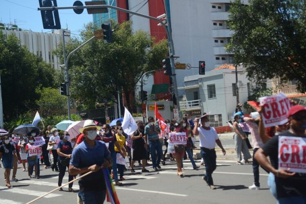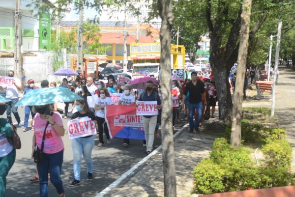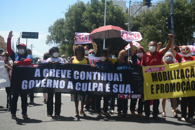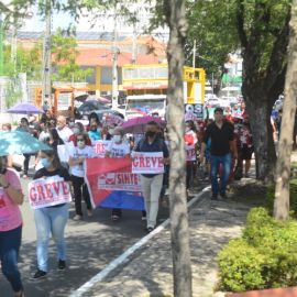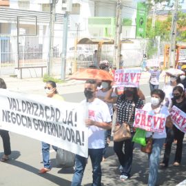 Após as manifestações de diversos trabalhadores e trabalhadoras dos 27 Núcleos Regionais, da direção estadual, de outras categorias e sindicatos e de estudantes em apoio a continuidade da greve, deliberada na Assembleia Geral realizada no último dia 20, os trabalhadores/as realizaram uma passeata na Avenida Frei Serafim em protesto contra o arrocho salarial e a desvalorização profissional.