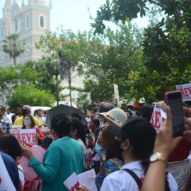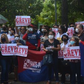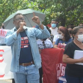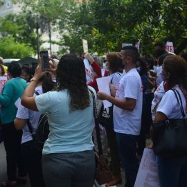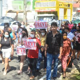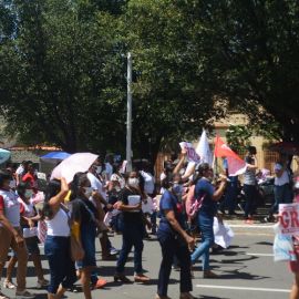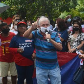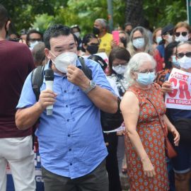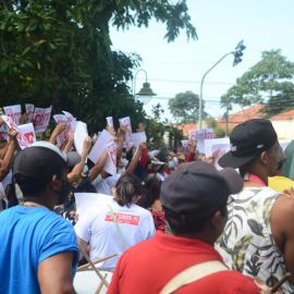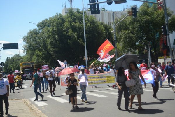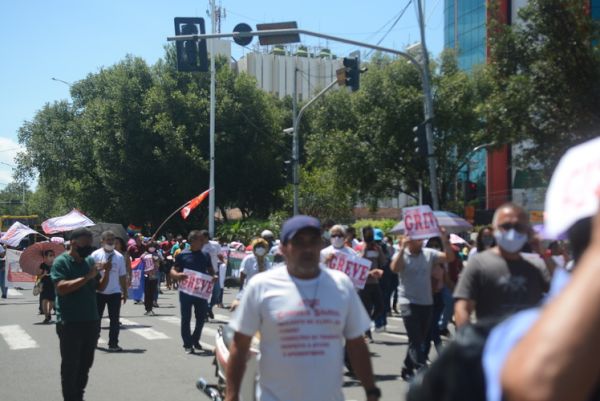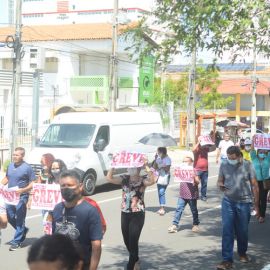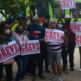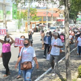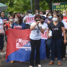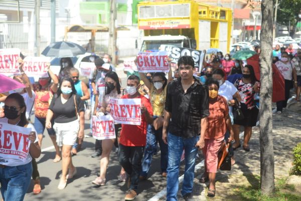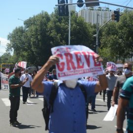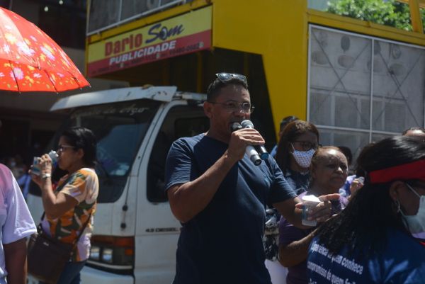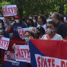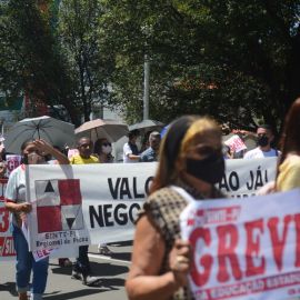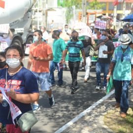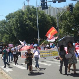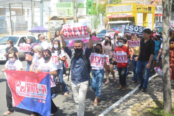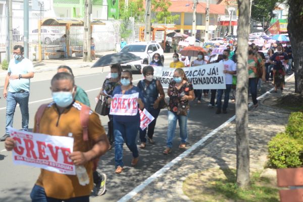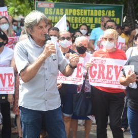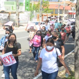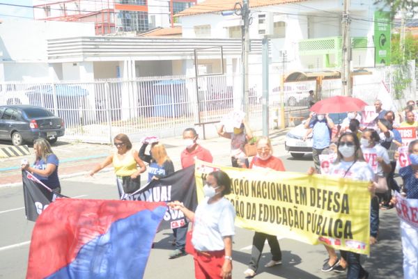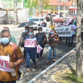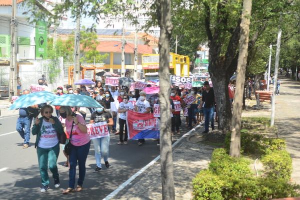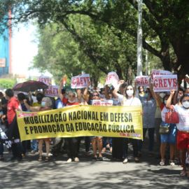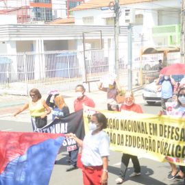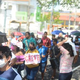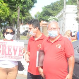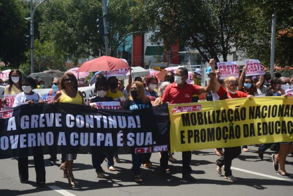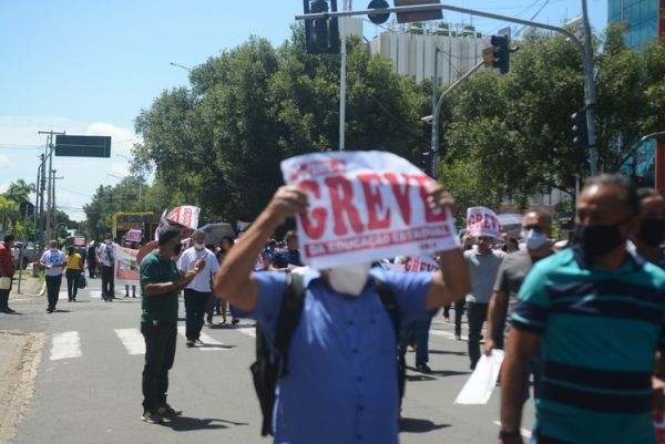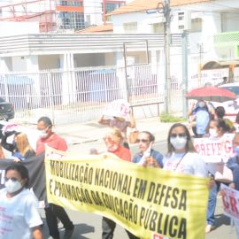 Após as manifestações de diversos trabalhadores e trabalhadoras dos 27 Núcleos Regionais, da direção estadual, de outras categorias e sindicatos e de estudantes em apoio a continuidade da greve, deliberada na Assembleia Geral realizada no último dia 20, os trabalhadores/as realizaram uma passeata na Avenida Frei Serafim em protesto contra o arrocho salarial e a desvalorização profissional.