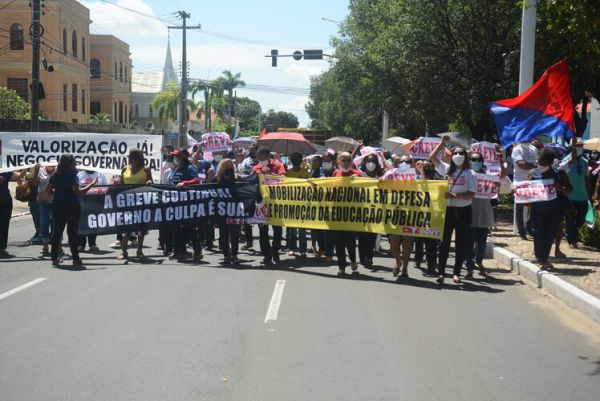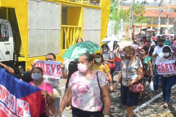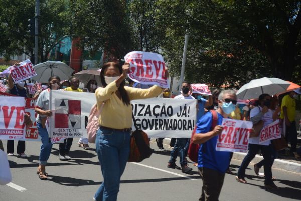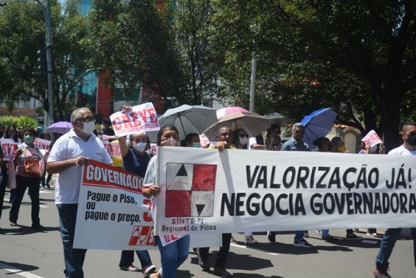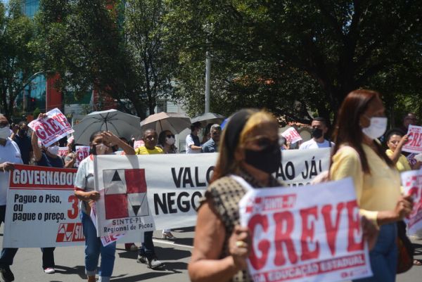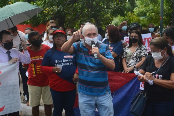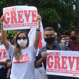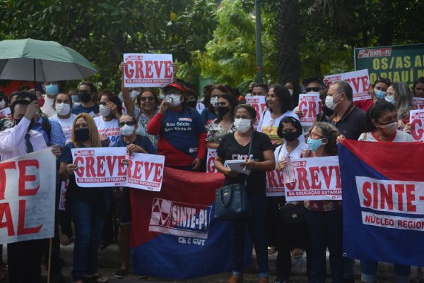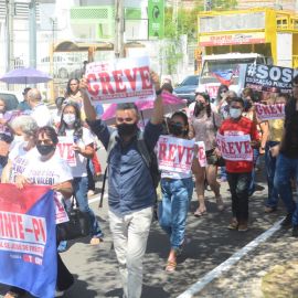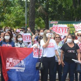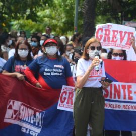 Na manhã desta quinta-feira (28), DIA MUNDIAL DA EDUCAÇÃO, os trabalhadores e trabalhadoras da rede estadual de educação protagonizaram, no 65º dia da greve da categoria, uma grande manifestação no Palácio de Karnak, na luta por valorização profissional, exigindo o pagamento dos reajustes salariais de 2019, 2020 e 2022. Nesta perspectiva o Sinte Piauí mantém a defesa de uma negociação concreta com o governo estadual, pois até esta data o governo Regina Sousa não se dignou a negociar com a categoria, apesar da versão que apresenta em declarações na imprensa.