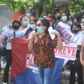 A presidenta do Sinte PI, Paulina Almeida, resgatou o fato de " No dia seguinte a posse da governadora, no dia 1º de abril, o sindicato oficialmente solicitou uma audiência com a governadora Regina Sousa visando negociar a forma como o governo estadual pagará o que deve a categoria. Até hoje não tivemos resposta. Como então, membros do governo e a própria governadora afirmam ou insinuam na mídia que estavam negociando ou que a nossa categoria, de forma intransigente e insensível, não quer negociar, quando na verdade estamos solicitandoi a abertura de negociação???", indagou a presidente do sindicato. Paulina Almeida informou que, até que as negociações sejam abertas, o Sinte Piauí promoverá as "quintas resistentes", com manifestações no Palácio de Karnak todas as quintas-feiras, em defesa da educação pública e dos direitos da categoria.