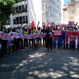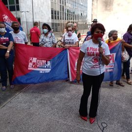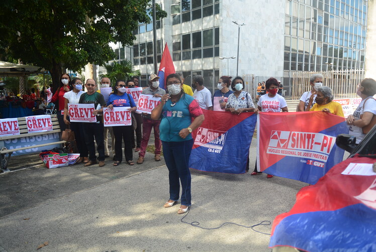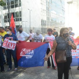 Entre as diversas panfletagens realizadas pelo Sinte Piauí no curso da greve geral deflagrada no dia 23 de fevereiro,a realizada na manhã desta terça-feira (3), na Praça Rio Branco, no Centro de Teresina, foi a que mais incorporou depoimentos de pais e avós de estudantes que, ao tempo em que manifestaram a preocupação com o fato destes estarem sem aulas, sublinharam o apoio incondicional a greve dos trabalhadores e trabalhadoras em educação da rede estadual, deixando evidente que a culpa pela greve cabe aos governos Welllington Dias/ Regina Sousa.