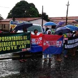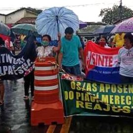 Na manhã de sexta-feira (20) os trabalhadores e as trabalhadoras da rede estadual de educação, mobilizados pelo Núcleo Regional de Água Branca, realizaram um protesto contra o arrocho salarial imposto pelos governos Wellington Dias e Regina Sousa. Ao mesmo tempo, exigiram que o governo estadual mude a sua postura e abra negociação com o SINTE PI para cumprir a Lei do Piso, pagando os reajuste salariais dos anos de 2019, 2020 e 2021.