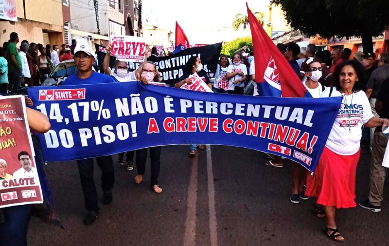 Na tarde de sábado (21) os trabalhadores e trabalhadoras da rede estadual de educação promoveram uma grande manifestação em prol da educação pública e da valorização profissional, pontuando a exigência do cumprimento da Lei do Piso e o pagamento dos reajustes salariais dos anos de 2019, 2020 e 2022, devidos a categoria pelos governos Wellington Diase Regina Sousa.