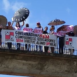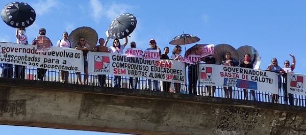 Há mais de três meses em greve, os trabalhadores e as trabalhadoras da rede estadual de educação, mobilizados pelo Sinte Picos, realizaram uma manifestação na manhã desta terça-feira (24) na passarela da BR 316, próximo da ponte do Rio Guaribas.