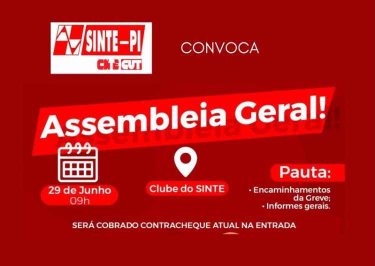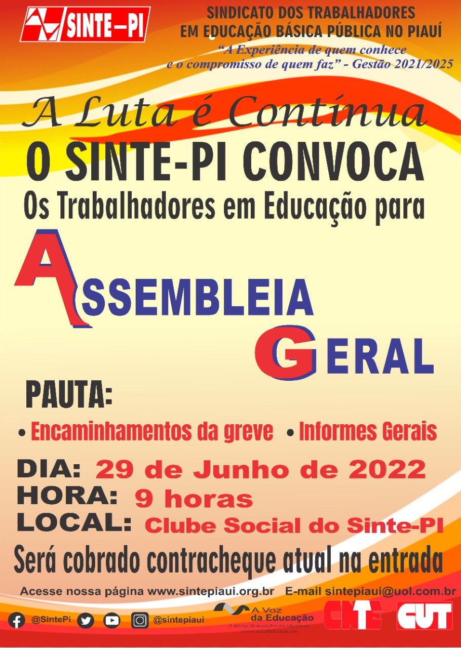 O Sinte-Piauí convoca toda categoria da educação para uma Assembleia Geral Extraordinária