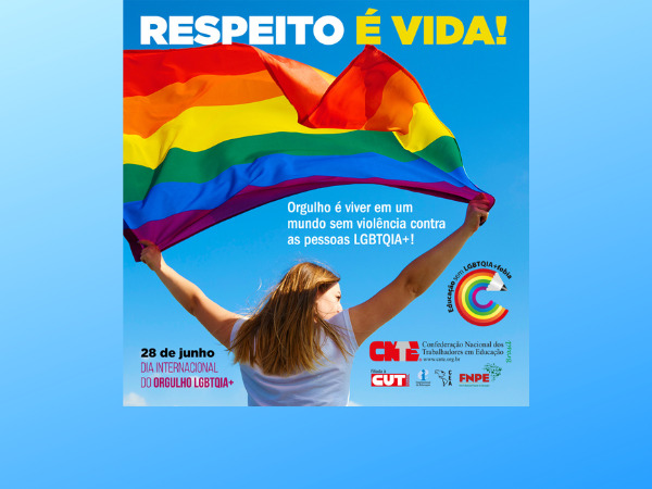 Nesta terça-feira, 28 de junho, é comemorado o Dia Internacional do Orgulho LGBTQIA+. Nesta data a Confederação Nacional dos Trabalhadores em Educação (CNTE) reforça a importância do respeito às pessoas LGBTQIA+ e traz a mensagem “Orgulho é viver num mundo sem violência contra as pessoas LGBTQIA+”, fomentando um horizonte de paz com inclusão e diversidade.