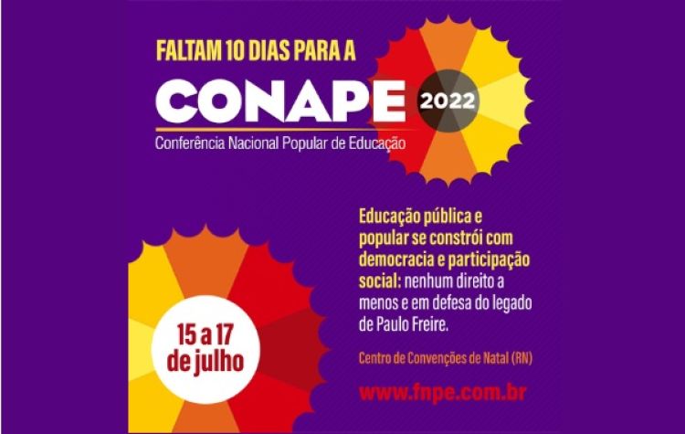 Organizada pelo Fórum Nacional Popular da Educação (FNPE), a II Conape tem como lema “Educação pública e popular se constrói com democracia e participação social: nenhum direito a menos e em defesa do legado de Paulo Freire”. Entre os temas que serão discutidos na CONAPE de 2022 está a educação pública, popular e gratuita e uma profunda reflexão sobre qual projeto de nação e projeto de educação que o país precisa.