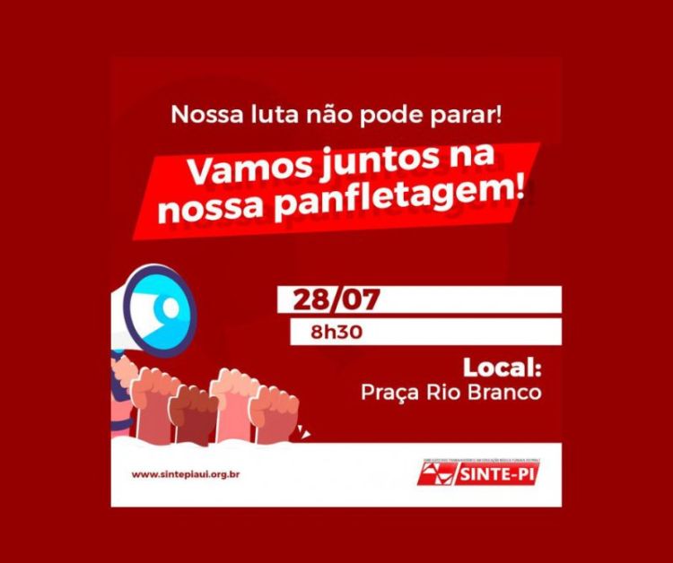 Nesta quinta-feira, dia 28/07, a partir das 8h30, estaremos na Praça Rio Branco, centro de Teresina, para denunciar mais uma vez os desmandos do governo estadual e o descaso com a educação pública.