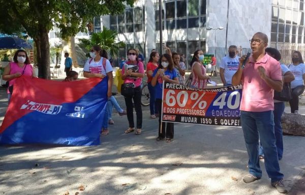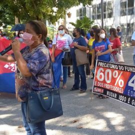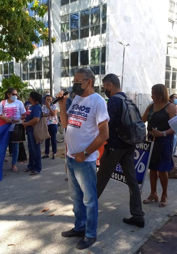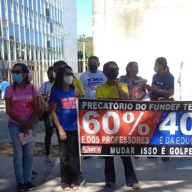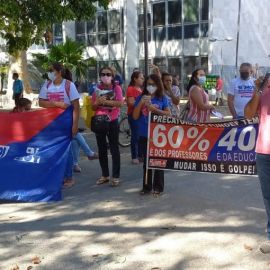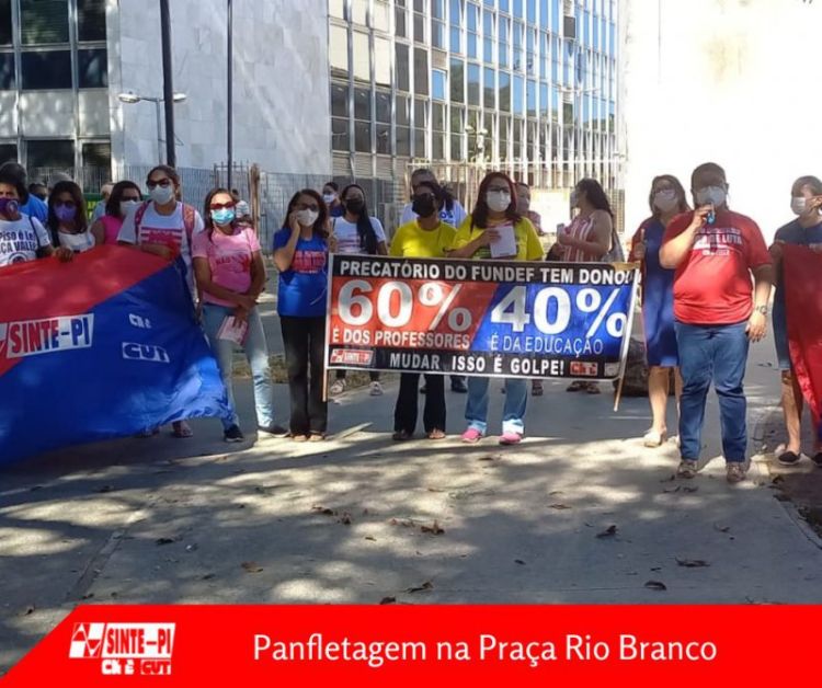 Na manhã desta quinta-feira (28), os trabalhadores e trabalhadoras em educação marcaram presença na Praça Rio Branco, centro de Teresina, para denunciar o descaso do governo e parlamentares com a educação básica pública em nosso estado.