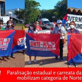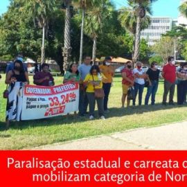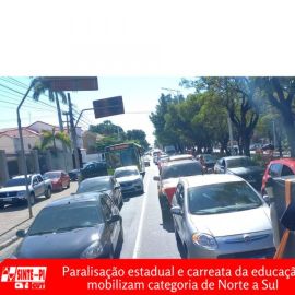 Na manhã desta quarta-feira, 08 de agosto, os trabalhadores e trabalhadoras em educação realizaram uma paralisação estadual e uma carreata para denunciar para a sociedade e cobrar do governo estadual o respeito aos trabalhadores em educação e o cumprimento das pautas da campanha salarial, como o reajuste de 33,24% para professores e funcionários ativos e aposentados, pagamento do precatório do Fundef e outras demandas.