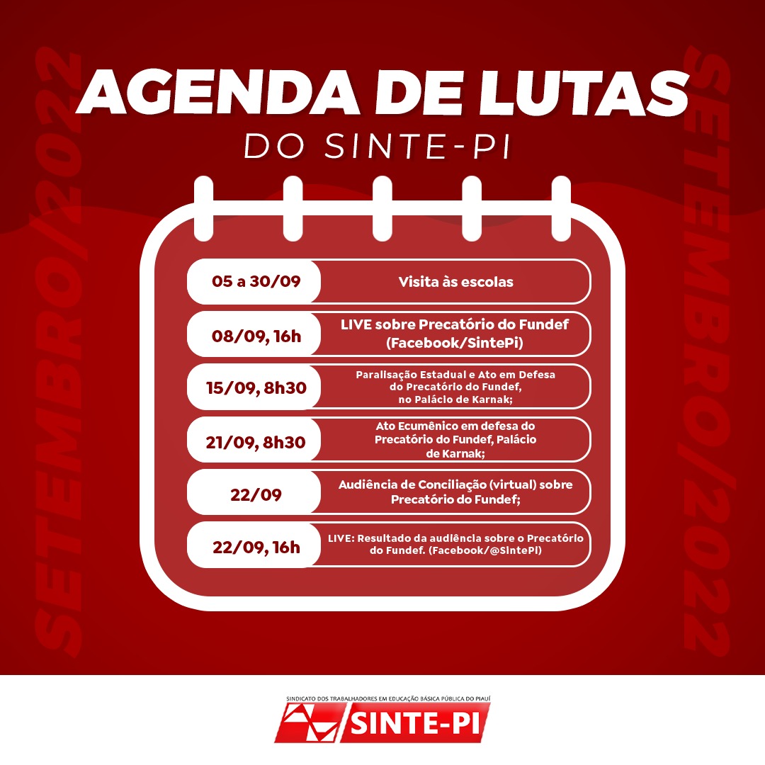 A agenda de atividades e mobilização para os trabalhadores em educação neste mês de setembro faz um destaque para o Precatório do Fundef.