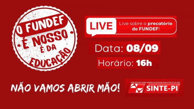 Nesta quinta-feira (08/09) o SINTE-PI realizará uma Live (transmissão ao vivo) para esclarecer dúvidas sobre o precatório do Fundef para os trabalhadores da educação pública.