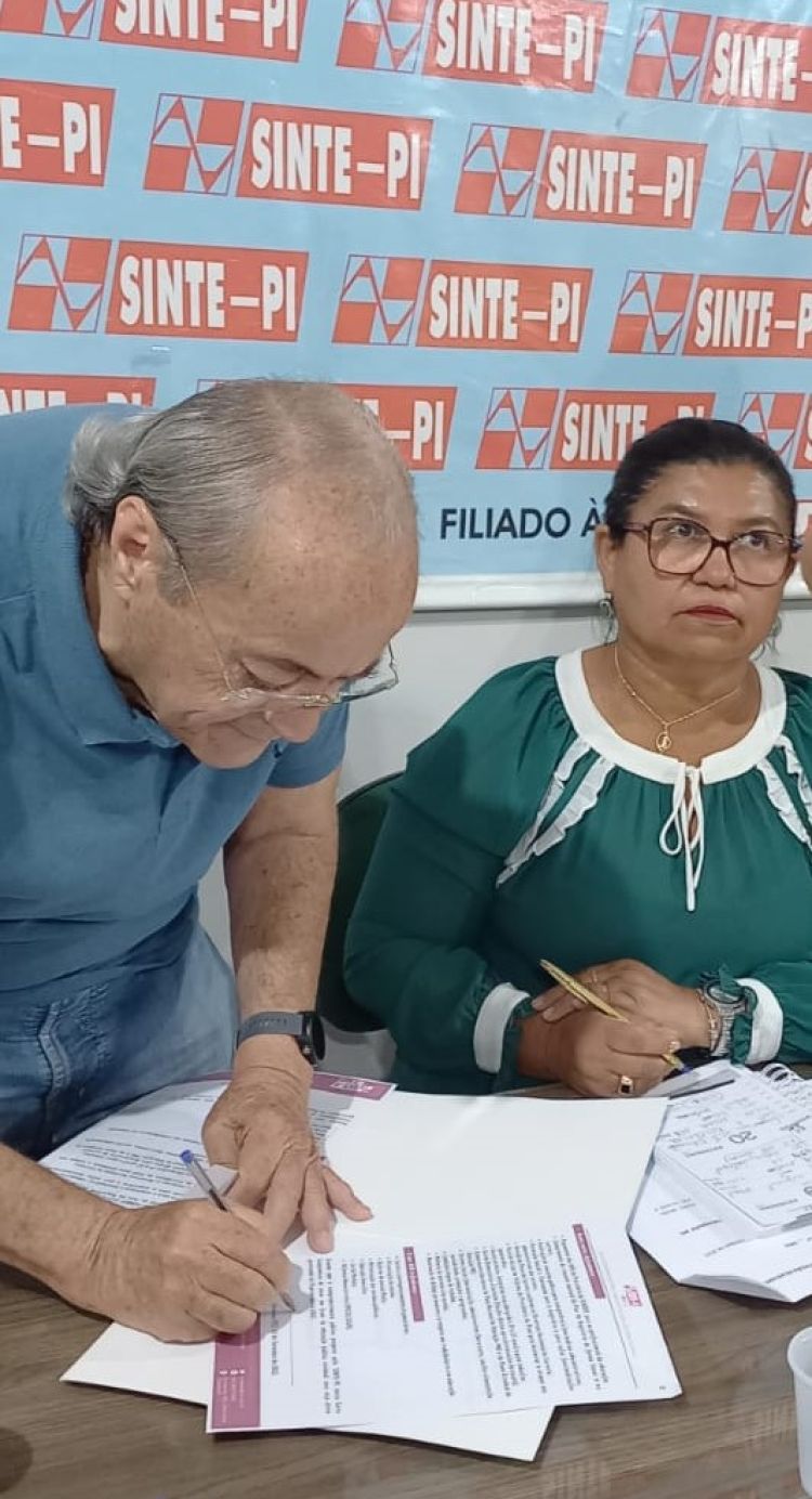 O Sinte Piauí formalizou, na tarde desta terça-feira (13), durante a visita do candidato ao governo do Piauí pelo União Brasil, Sílvio Mendes, a entrega da Carta Compromisso formulada pela entidade para vincular os candidatos e candidatas a cargos eletivos as propostas do Sinte Piauí em defesa da educação pública piauiense.