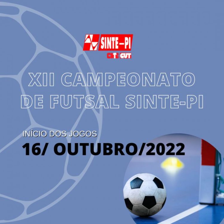 A décima segunda edição do Campeonato de Futsal do Sinte-PI terá início dia 16 de outubro. O certame terá a participação de 10 equipes, sendo cinco da capital e cinco das regionais. Os jogos seguirão até novembro, quando teremos a premiação e confraternização das equipes.