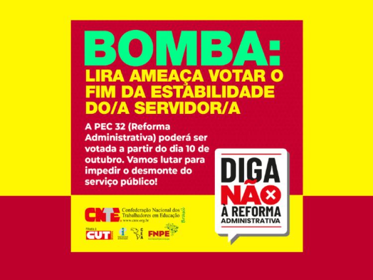O presidente da Câmara dos Deputados, Arthur Lira (PP/AL) ameaçou retomar a votação da Reforma Administrativa - Proposta de Emenda à Constituição (PEC) 32/2020 na próxima semana, a partir do dia 10 de outubro. Essa proposta do governo Bolsonaro é um ataque ao serviço público e, se aprovada, poderá reduzir salários, acabar com a estabilidade do/a servidor/a público/a, abrir brechas para a corrupção e entre outras perdas para a classe trabalhadora.