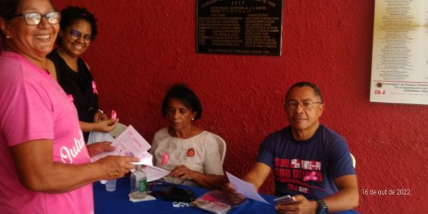 No último domingo (16), o Sinte Piauí promoveu, através da Secretaria da Mulher Trabalhadora, mais uma ação de divulgação e conscientização da importância da Campanha do Outubro Rosa, com uma panfletagem no Clube do Sinte. A atividade teve uma excelente receptividade, evidenciando como essencial a disseminação da informação em todos os setores sobre o Outubro Rosa.