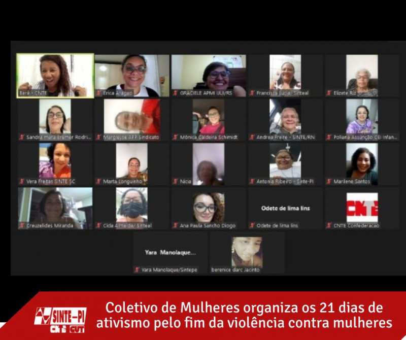 Trabalhadoras da educação de todo país se reuniram nesta quinta-feira (17) para organizar os 21 dias de ativismo pelo fim da violência contra mulheres, que começa no próximo dia 20 de novembro. O Coletivo de mulheres da Confederação Nacional dos Trabalhadores em Educação (CNTE) também debateu a conjuntura política e os desafios da categoria para o próximo período.