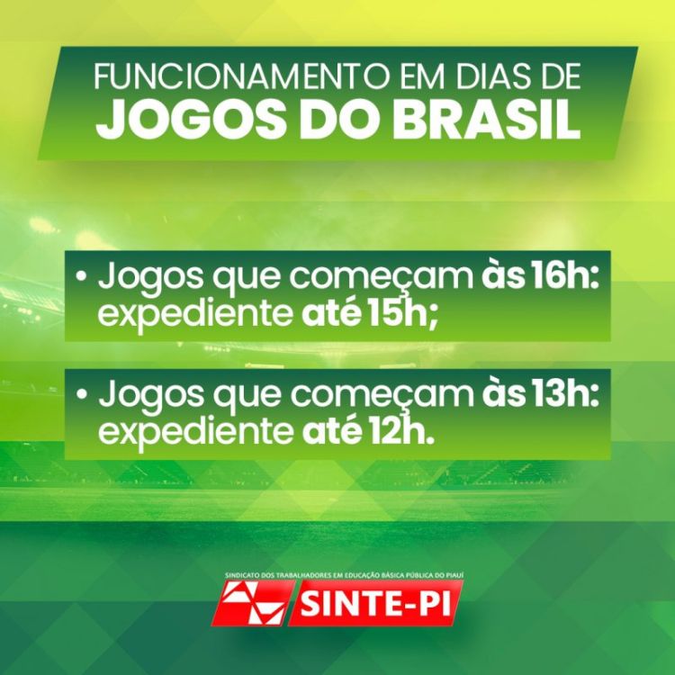 Confira como ficará os horários de funcionamento do SINTE-PI nos dias de jogos do Brasil na Copa do Mundo do Qatar.