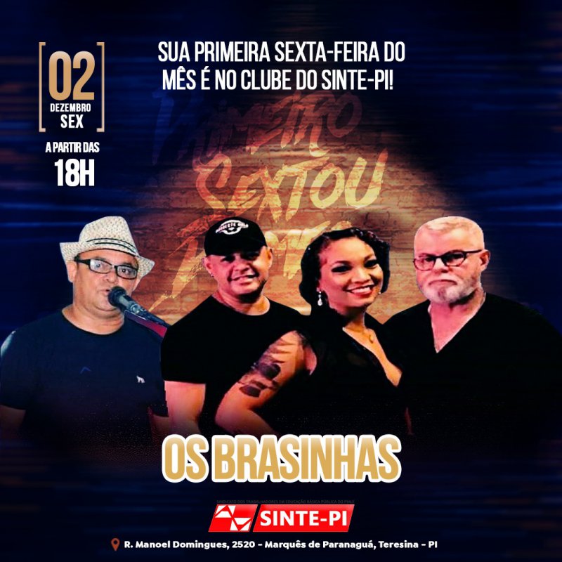 A tradicional festa da primeira sexta-feira do mês no Clube do Sinte traz como atração "Os Brasinhas".