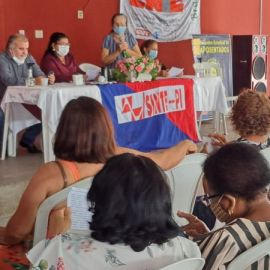 A reunião do Coletivo de Aposentadas do Sinte, realizada na manhã desta quinta-feira (15), no clube da entidade, reuniu servidoras aposentadas da capital e dos Núcleos Regionais para debater as demandas do segmento de aposentados da educação.