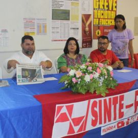 Posteriormente, o vice-presidente do Sinte-PI, fez uma explanação profunda sobre a conjuntura estadual, no âmbito da qual deixou claro que a realidade estadual para a classe trabalhadora é tão crítica quanto a nacional. No que tange a educação básica, demonstrou o quanto está sendo sucateada e a crescente desvalorização dos/as trabalhadores/as em educação do estado. Na sua exposição apresentou como está a luta do Sinte-PI no que diz respeito a campanha salarial.